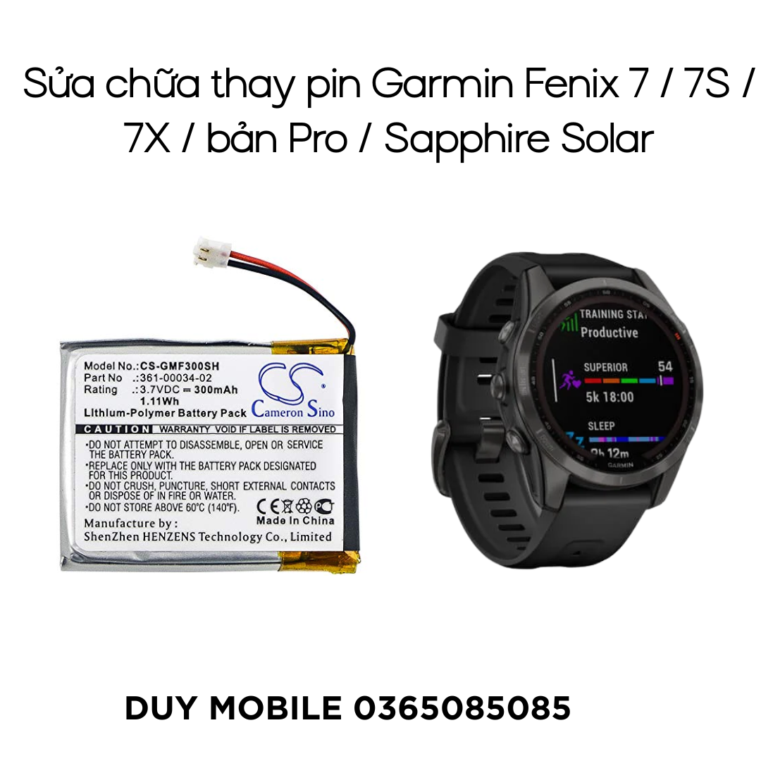 Garmin Fenix 7 Series là dòng đồng hồ thể thao cao cấp bậc nhất của Garmin, nổi bật với vật liệu siêu bền, định vị GPS chính xác, khả năng sạc năng lượng mặt trời (Solar) và thời lượng pin cực lâu. Tuy nhiên, sau một thời gian dài sử dụng với cường độ luyện tập cao, liên tục bật các chế độ GPS – theo dõi sức khỏe – cảm biến ánh sáng…, pin trên Fenix 7/7S/7X vẫn có thể bị chai – sụt nguồn – giảm thời gian sử dụng.
