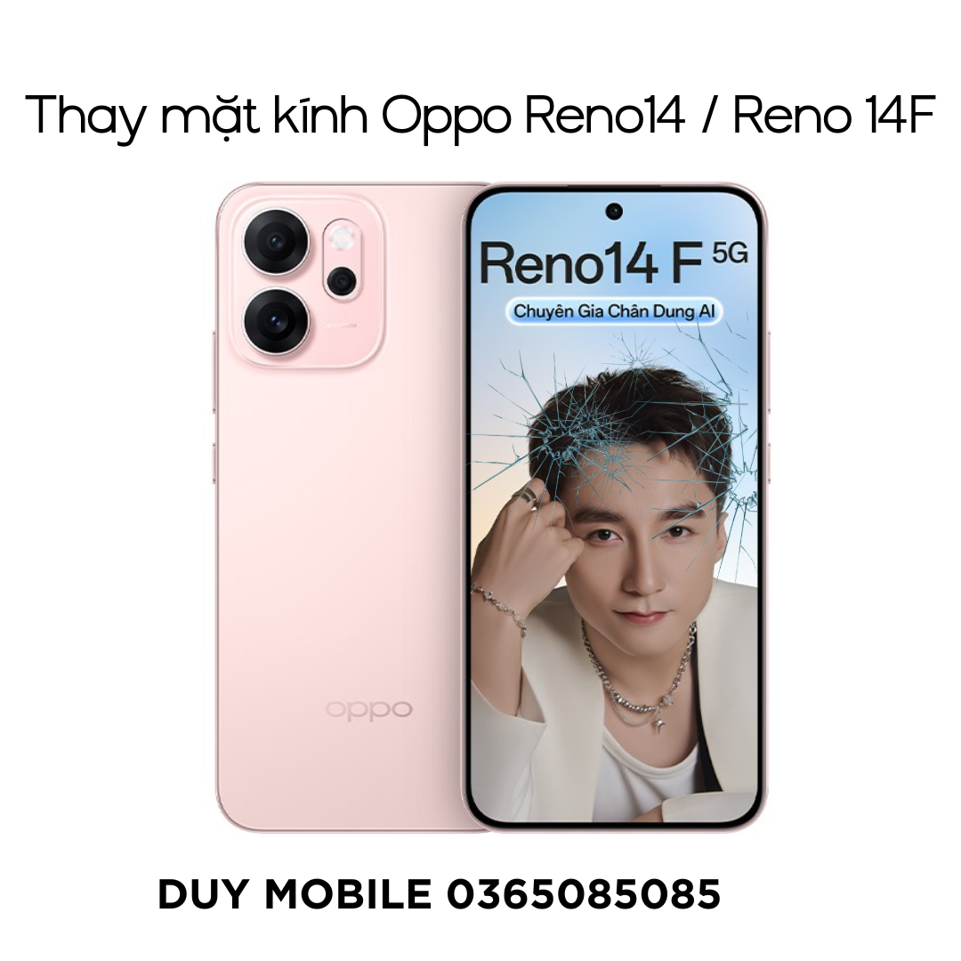 Nếu Oppo Reno14 hoặc Reno 14F của bạn đang bị nứt – vỡ kính, hãy thay kính sớm để đảm bảo an toàn và tránh hỏng màn hình. Duy Mobile là địa chỉ uy tín mang đến dịch vụ thay mặt kính chính hãng – nhanh – đẹp – bền – bảo hành dài, giúp máy hoạt động ổn định và đẹp như mới.